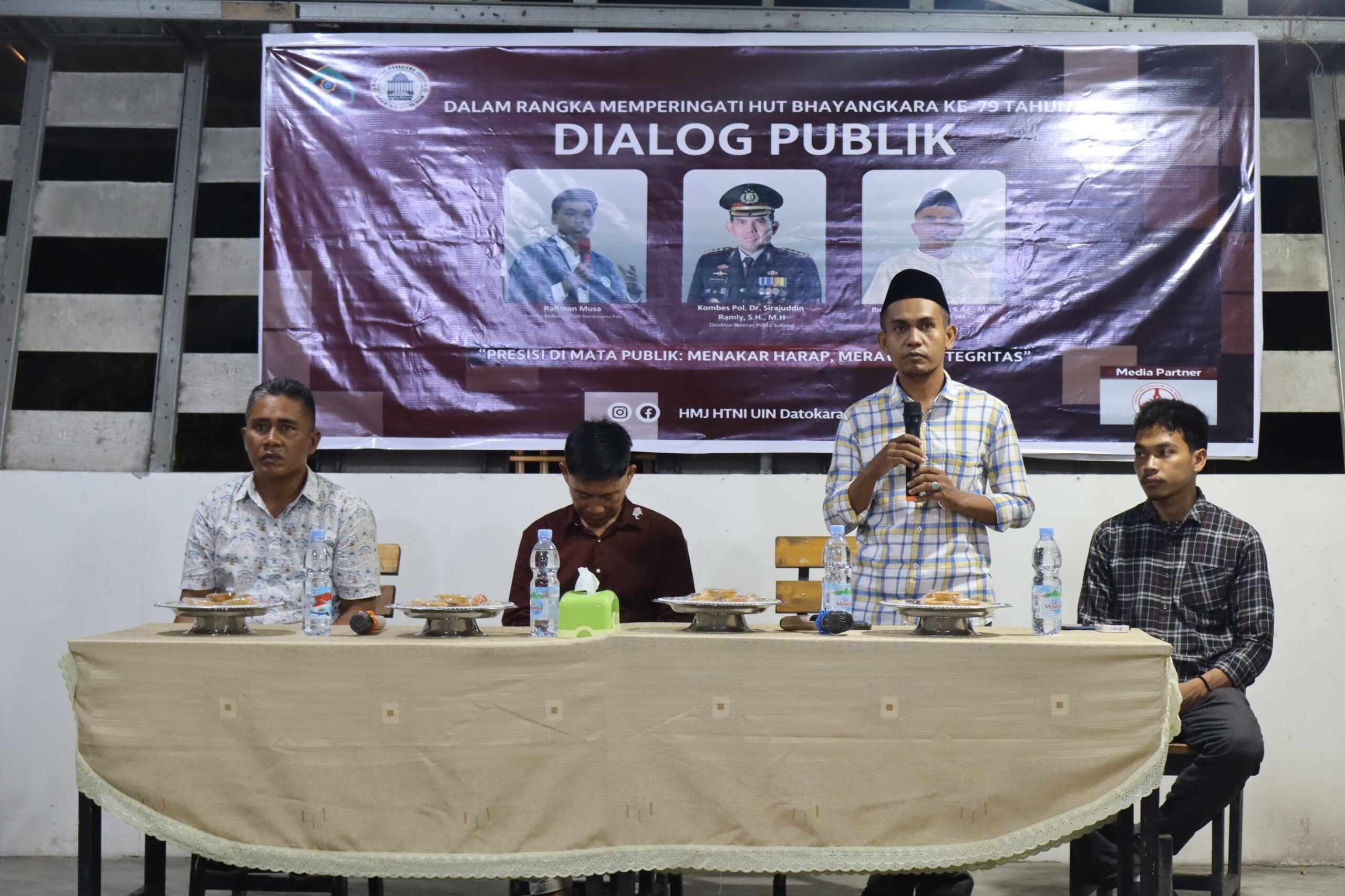 PALU, LPMQALAMUN.com – Himpunan Mahasiswa Jurusan (HMJ) Hukum Tata Negara Islam (HTNI) Fakultas Syariah (FASYA) UIN Datokarama Palu menggelar Dialog Publik bertema “Presisi di Mata Publik: Menakar Harap, Merawat Integritas”, pada Sabtu (5/7/2025), di Café Taman Ria.