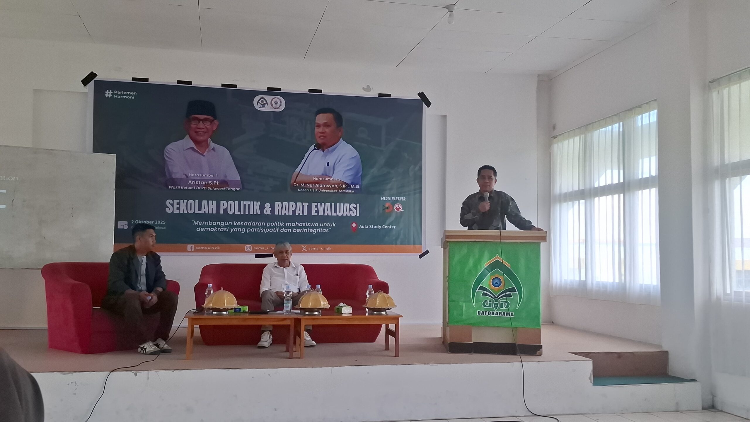 PALU, LPMQALAMUN.com – Senat Mahasiswa (SEMA) UIN Datokarama Palu menggelar Rapat Politik dan Rapat Evaluasi di Aula Study Center, Jalan Ponegoro, Kamis (02/10/2025).