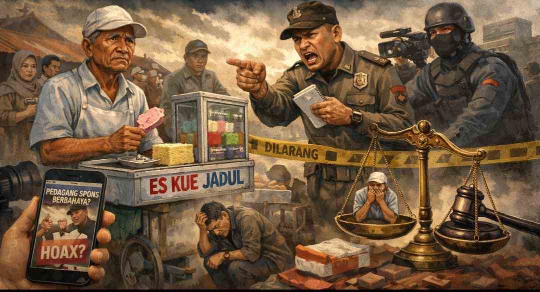 Belakangan ini, ruang publik kembali diramaikan oleh peristiwa yang melibatkan pedagang kecil dan aparat. Seorang pedagang es kue tradisional dituding menggunakan spons sebagai bahan pembuatan es, meskipun tudingan tersebut tidak pernah dibuktikan secara jelas. Kasus ini memunculkan pertanyaan mendasar mengenai cara aparat bersikap dan berkomunikasi dengan masyarakat kecil.