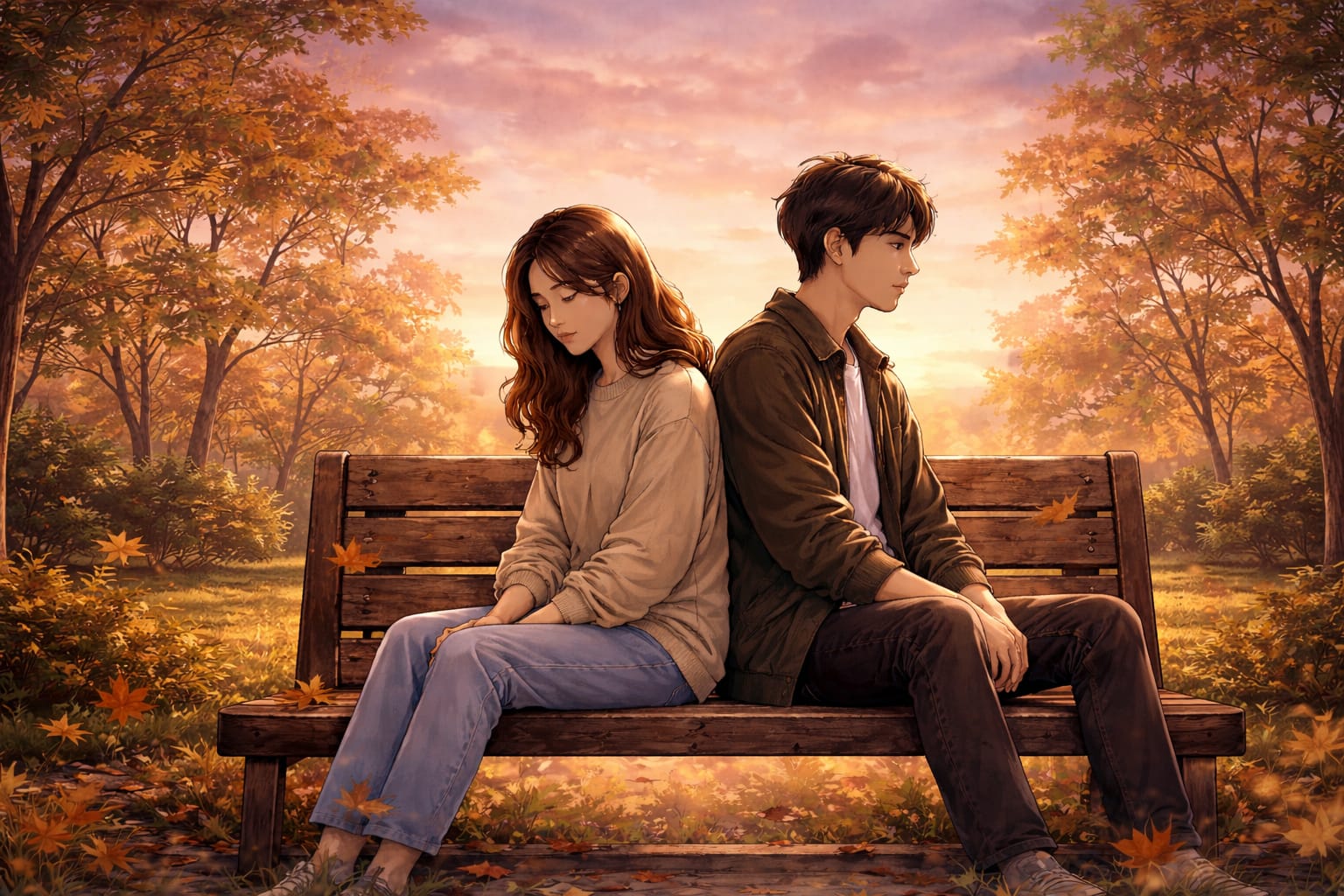Di bangku taman itu, kini Anya duduk sendiri. Bukan dengan kebencian, melainkan dengan pelajaran: bahwa bahagia di awal bukan jaminan untuk bahagia selamanya; bahwa cinta perlu dirawat, bukan hanya dirayakan; dan bahwa terkadang yang membuat hubungan hancur bukan kurangnya rasa, melainkan terlalu besarnya ego.
